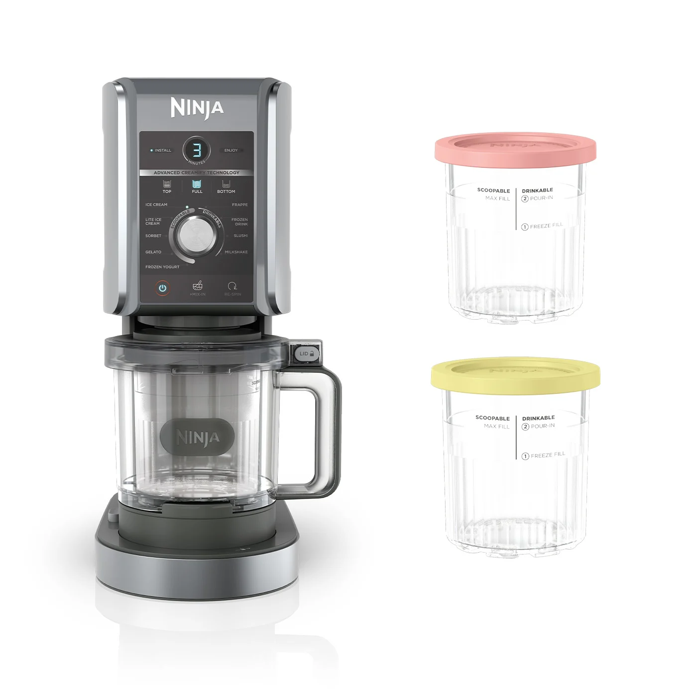 Want an even CREAMier dessert? Choose your preferred texture with the Re-spin function which makes your frozen treat even softer and CREAMier after the first round of processing.