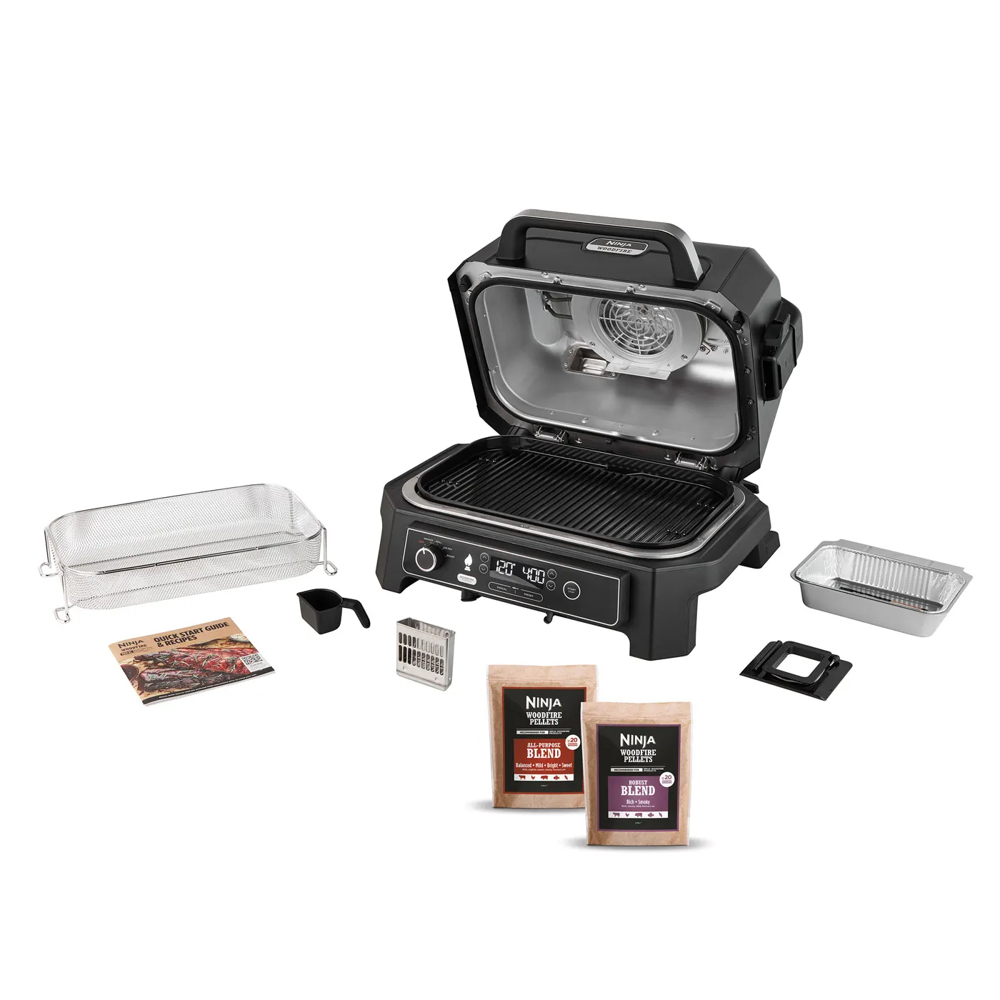 Your Pro XL BBQ grill includes a Woodfire Pellet Starter Pack of each signature blend, and a perfectly-sized scoop. Additional wood pellets are available to buy direct from Ninja.